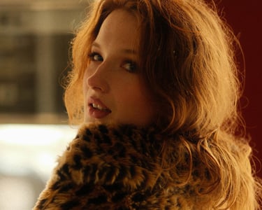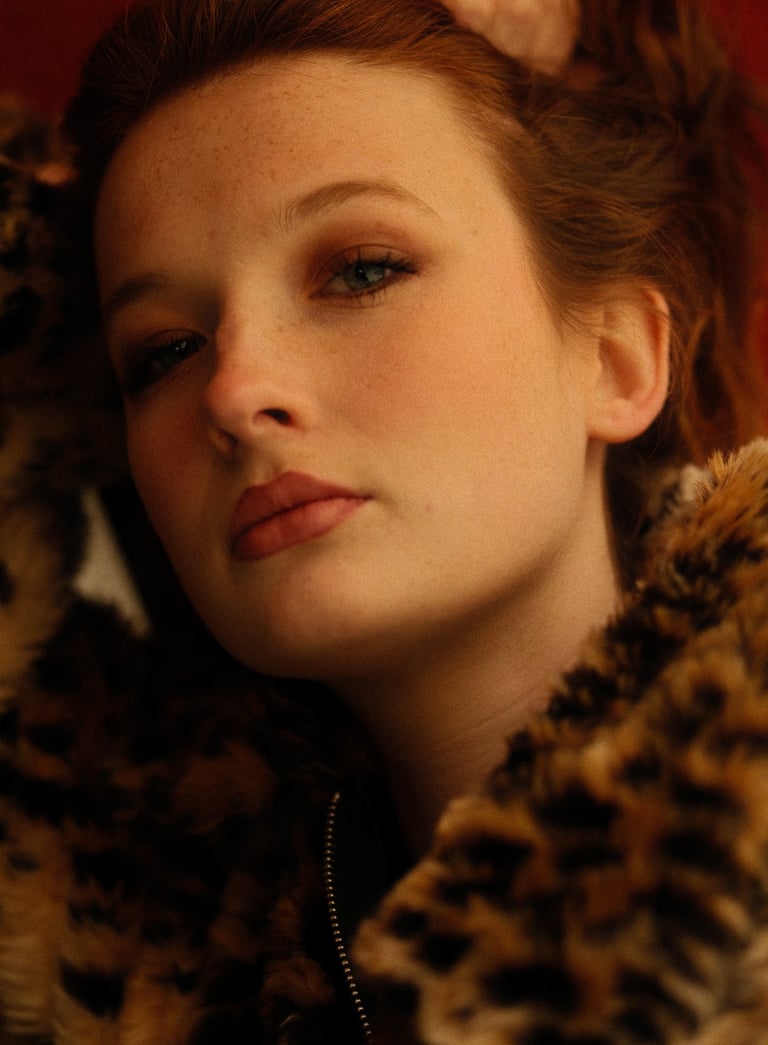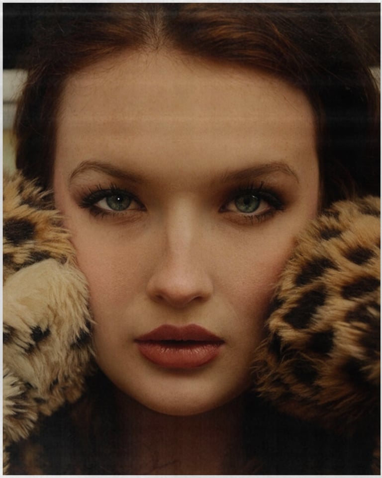 With fur textures, golden hues, and cinematic shadows, each frame explores the tension between being seen and remaining untouchable. The model’s eyes anchor the viewer — confident, intimate, and unapologetically present.