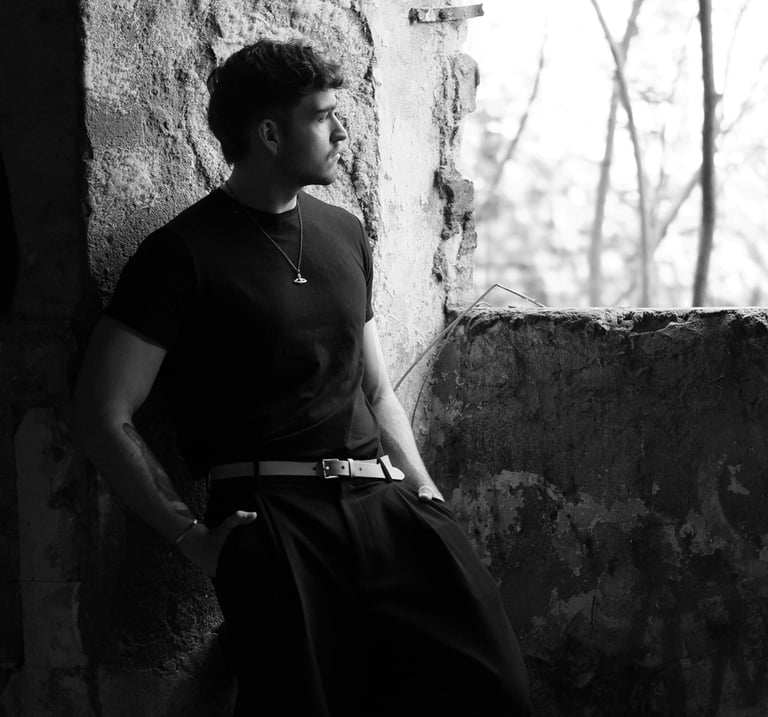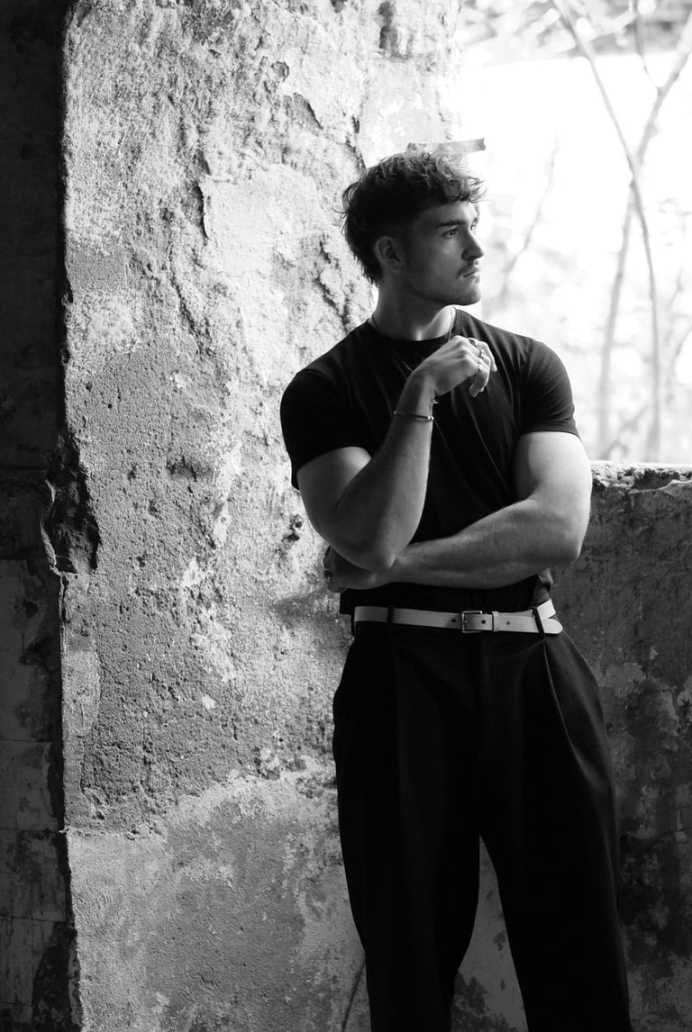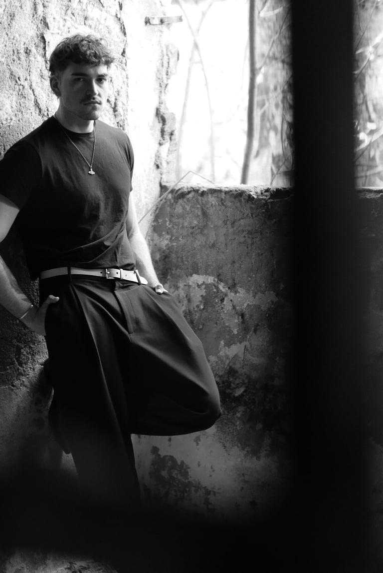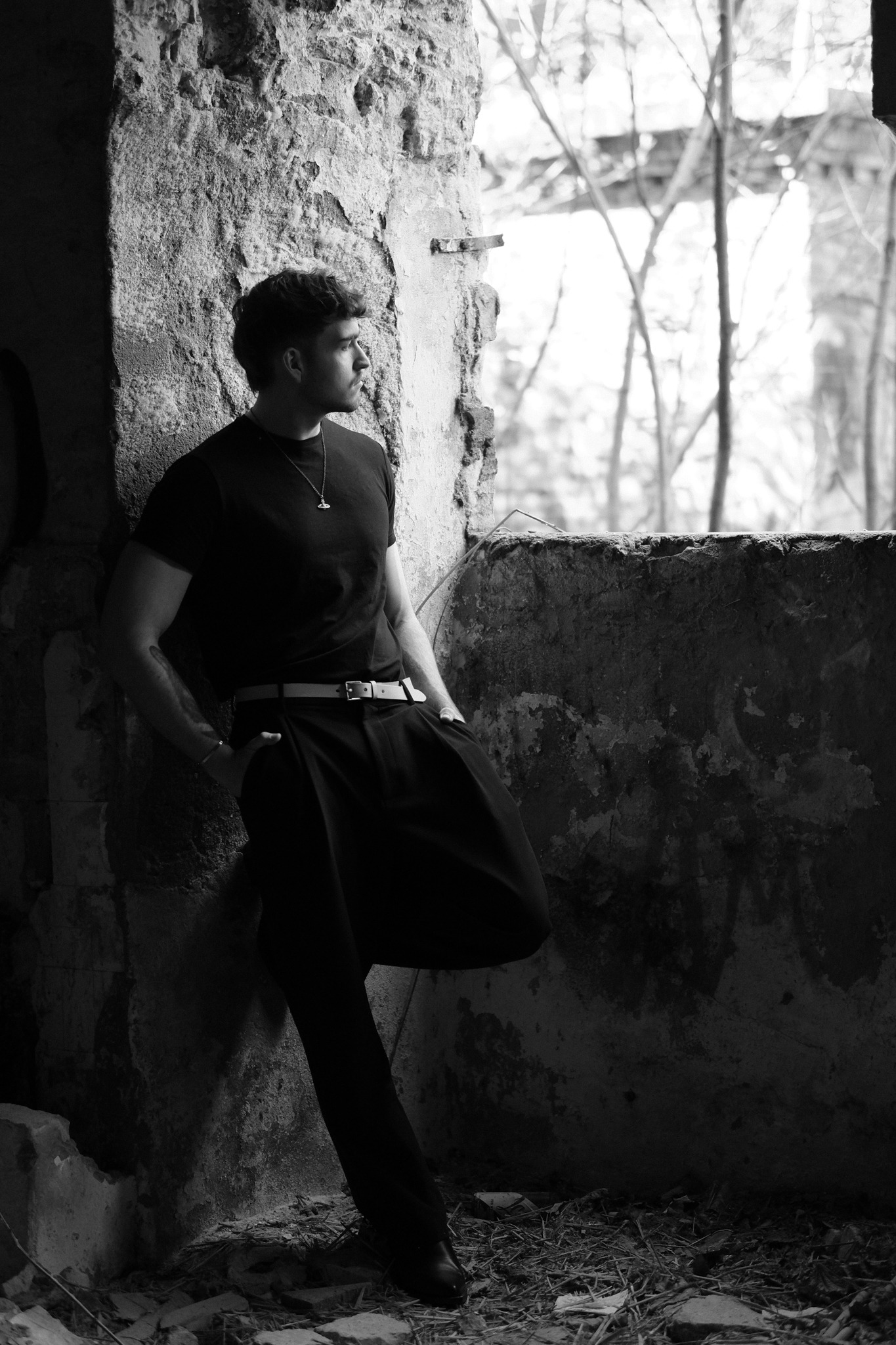 Sharp light cuts through decay, highlighting tension in posture and stillness in expression. With timeless styling and sculptural framing, the images blend vulnerability and control — masculinity not as performance, but as presence.
