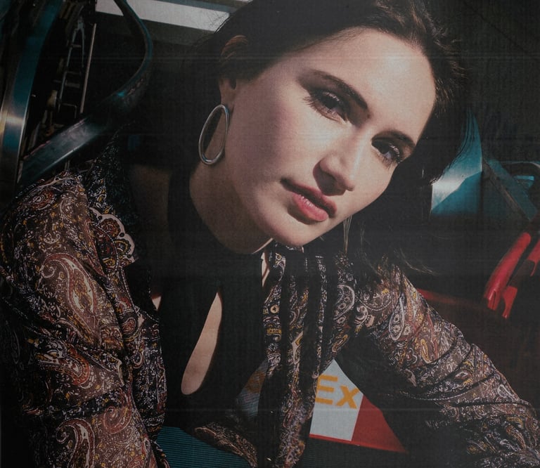 This image plays with contrast, both visual and emotional: softness in light meets strength in attitude.